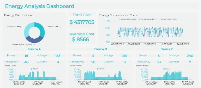 Real-time energy cost tracking, consumption trends, and device-level power monitoring for optimal resource management